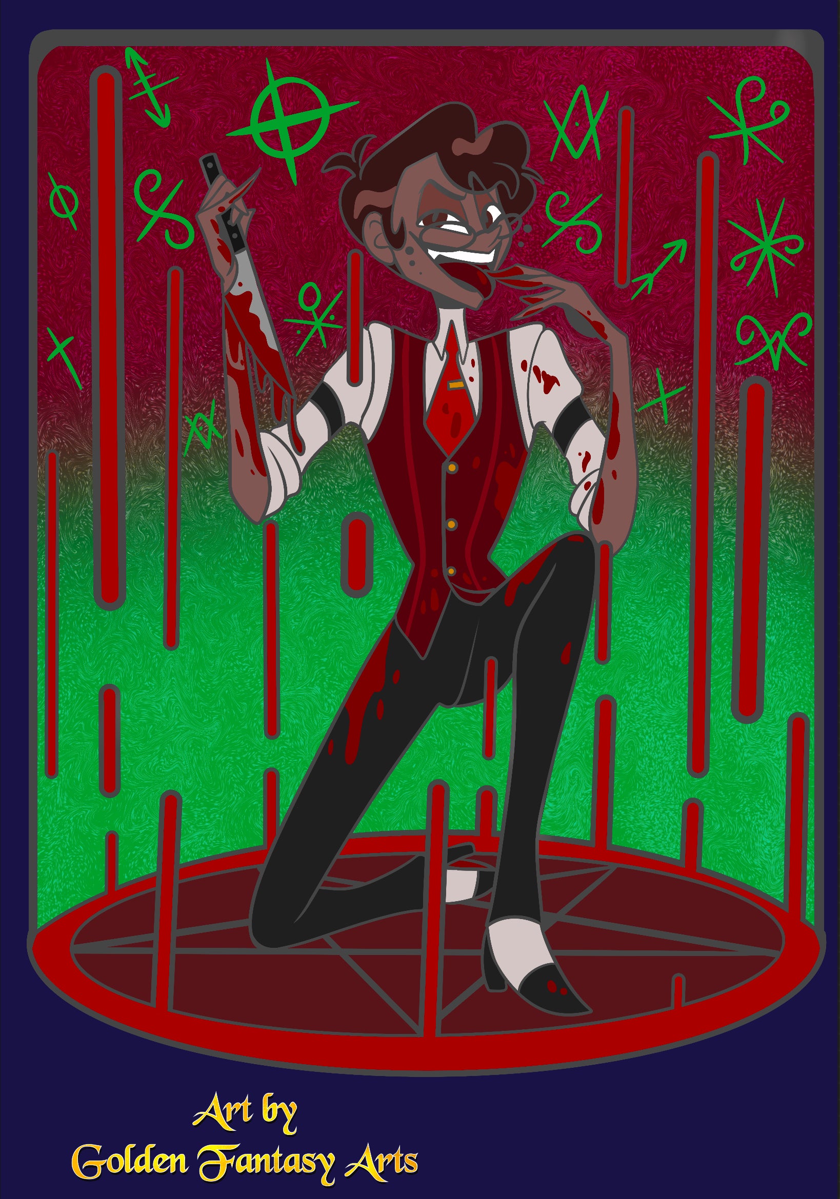 PREORDER Human Alastor pearl gradient 90mm panel pin with rounded bottom and printed details red glow